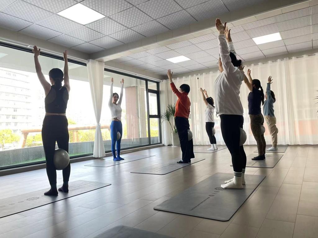 活动开始,一支部党员、中圣·领航运动高端综合馆馆长童丹为大家讲解了瑜伽的由来、注意事项,随后为大家进行瑜伽教学,同时根基每个人的情况,针对性指导可改善肩颈或腰椎不适的瑜伽体式、呼吸方式进行了一对一的细致讲解,大家在愉快的音乐下身心放松、舒展肩颈、放空思绪……跟着老师翩翩起舞。